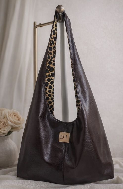 Sac cabas hobo – simili-cuir marron avec un leger relief et doublure léopard