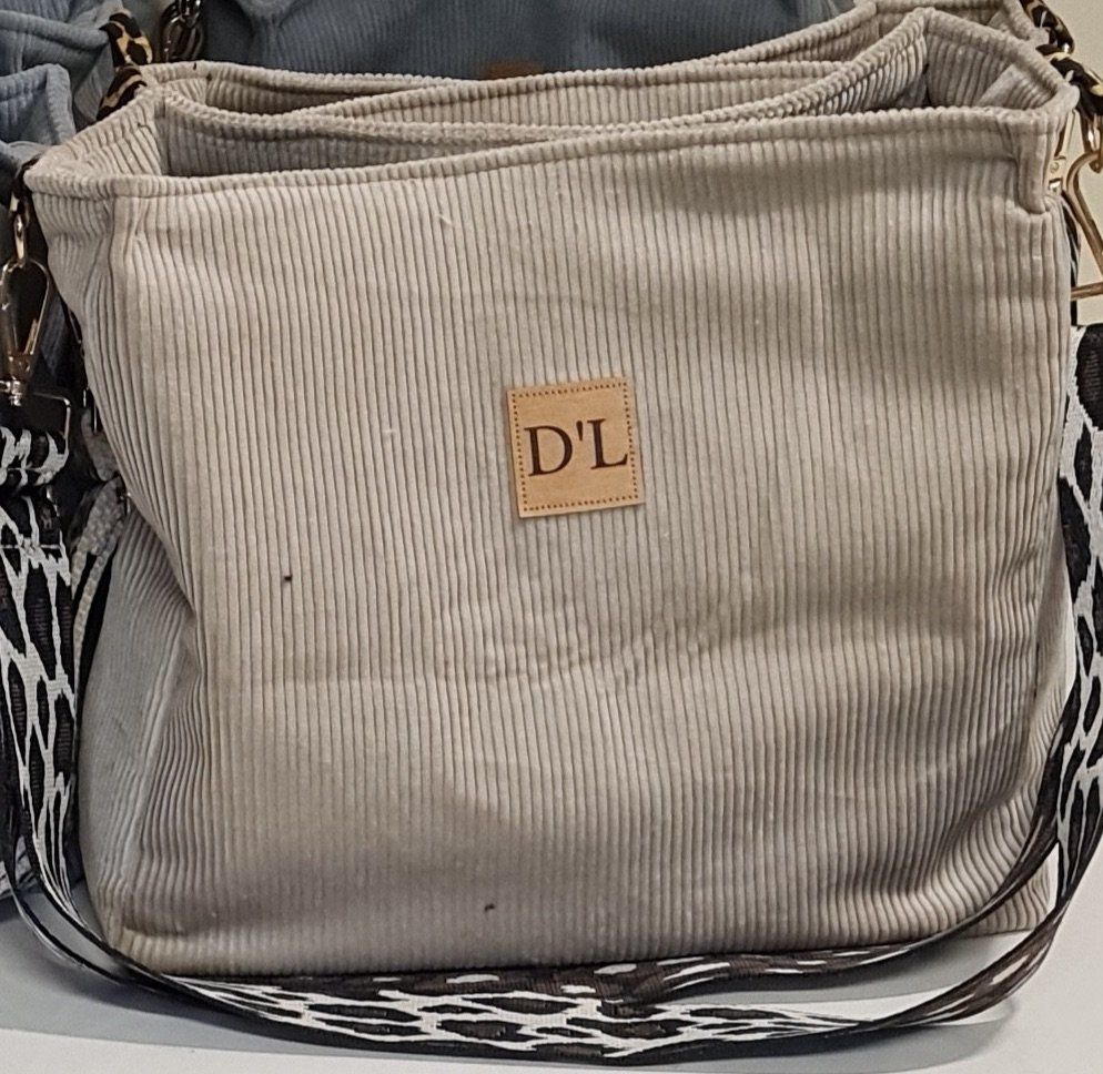Sac en velours côtelé épais de couleur beige, il offre une texture douce et chaleureuse, très tendance .équipé d'une longue
